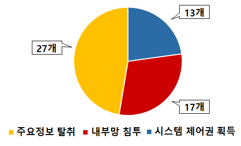 | 구 분 | 침투성공 | 시스템제어권 획득 | 내부망 침투* | 주요정보 탈취** |