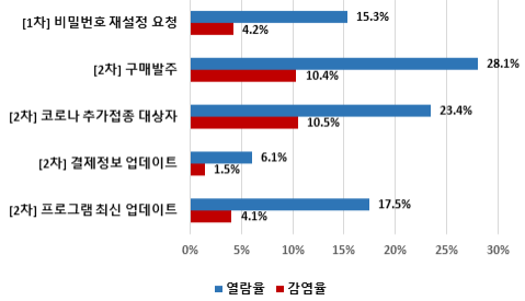 * (열람율) 해킹메일 클릭한 경우, (감염율) 해킹메일 클릭 후 첨부파일(악성파일) 클릭한 경우