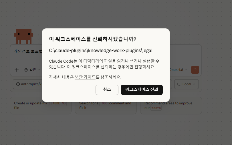 로컬 워크스페이스에 법률 관련 각종 계약서 및 문서 등을 검토 가능할 것으로 보임