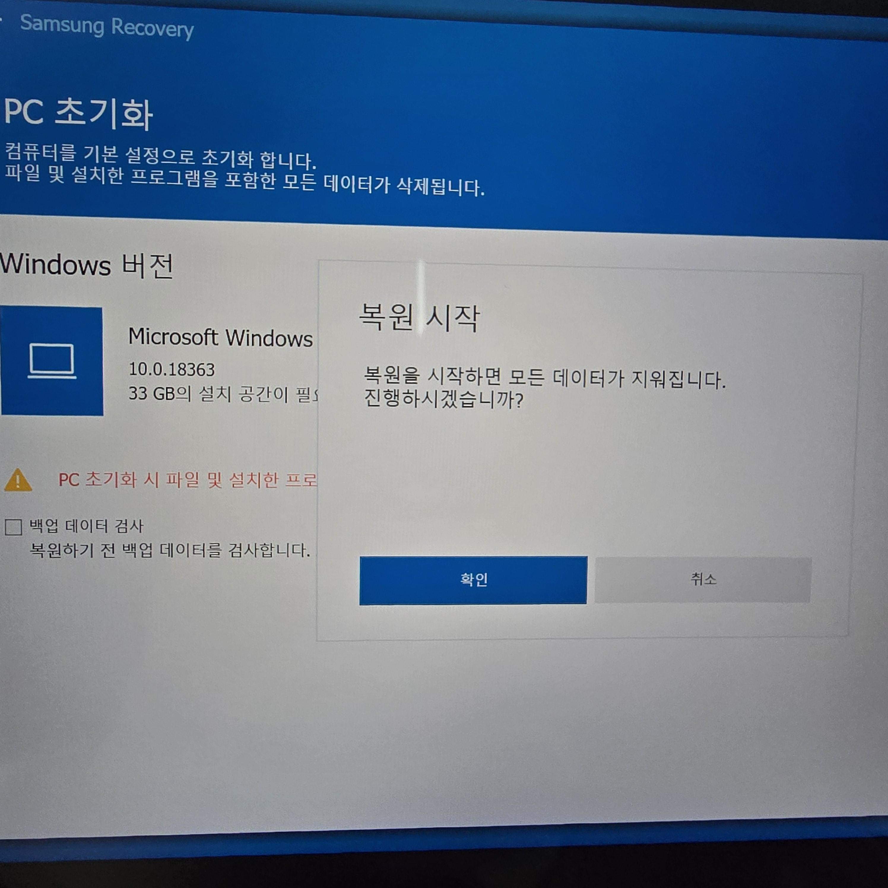 삼성 노트북 블루스크린 현상, 결국 초기화 하고 윈도우 재설치