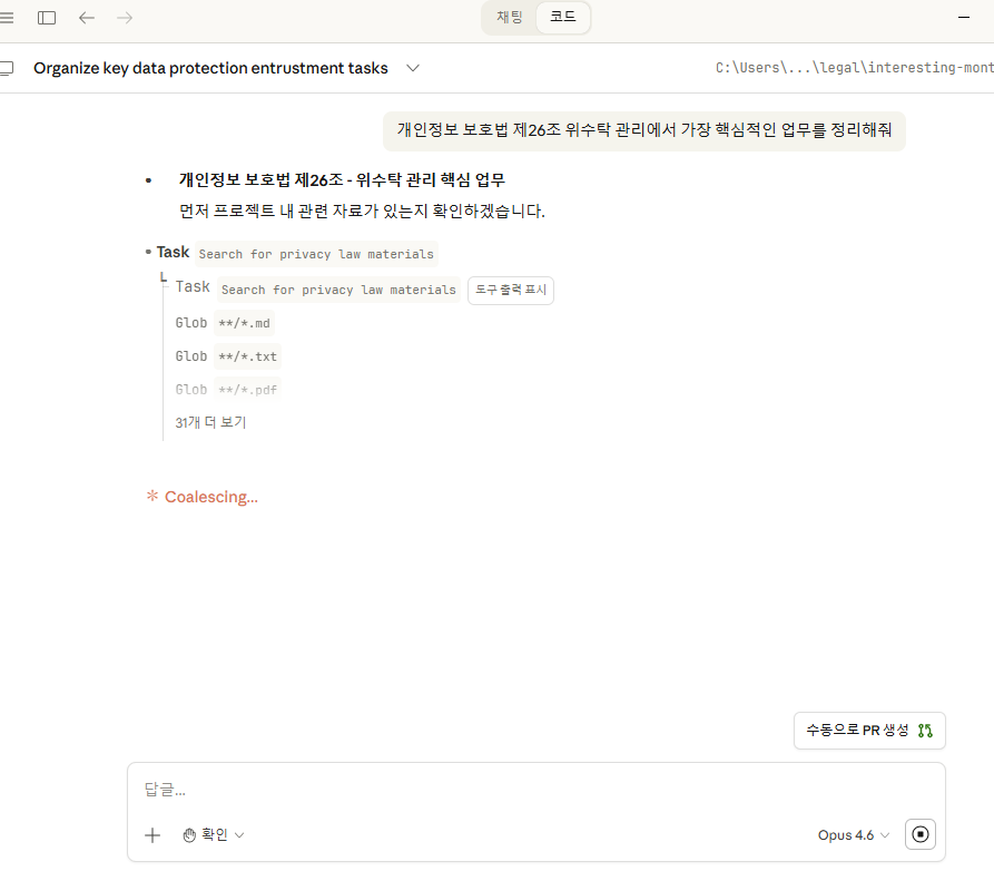 로컬 워크스페이스에 법률 관련 각종 계약서 및 문서 등을 검토 가능할 것으로 보임