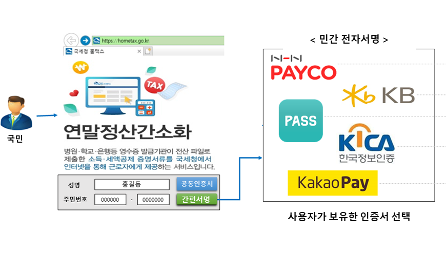 < 연말정산 간소화 서비스에 민간 전자서명 이용 예시 >