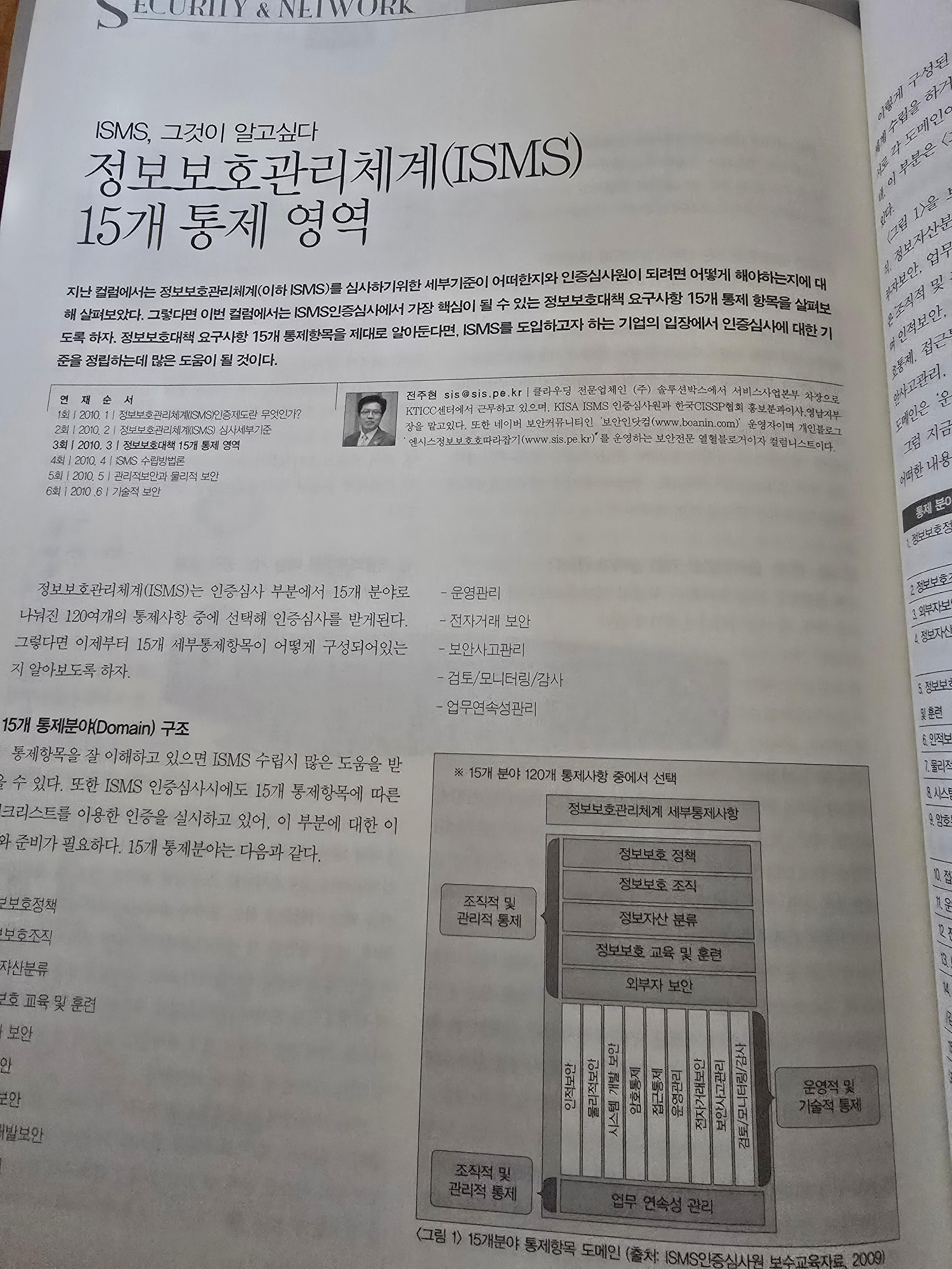 4번째 연재시리즈이다. 이 내용은 15년전에 기록한 내용으로 최신 정보를 참고하려면 관련 홈페이지 ISMS.KISA.OR.KR 에서 최신 자료를 접하기 바란다. 이는 개인 블로그 기록용으로 최신 정보와 차이가 있음을 미리 밝힌다.