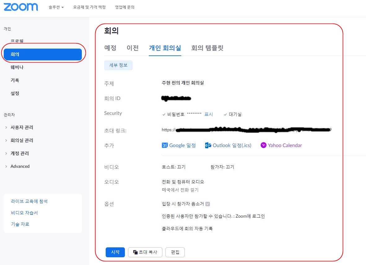 줌(zoom) 온라인 방송 초보자 따라하기-(3) 초대하기, 회의(방송) 시작하기