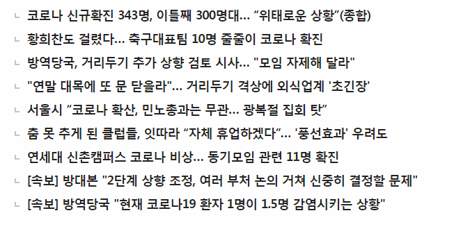 코로나 신규 확진자 343명 다시 재 유행 될까?